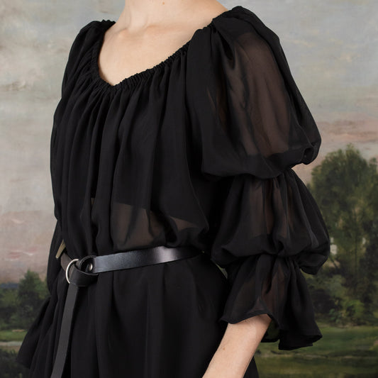 Black Chiffon Long Sleeve Chemise