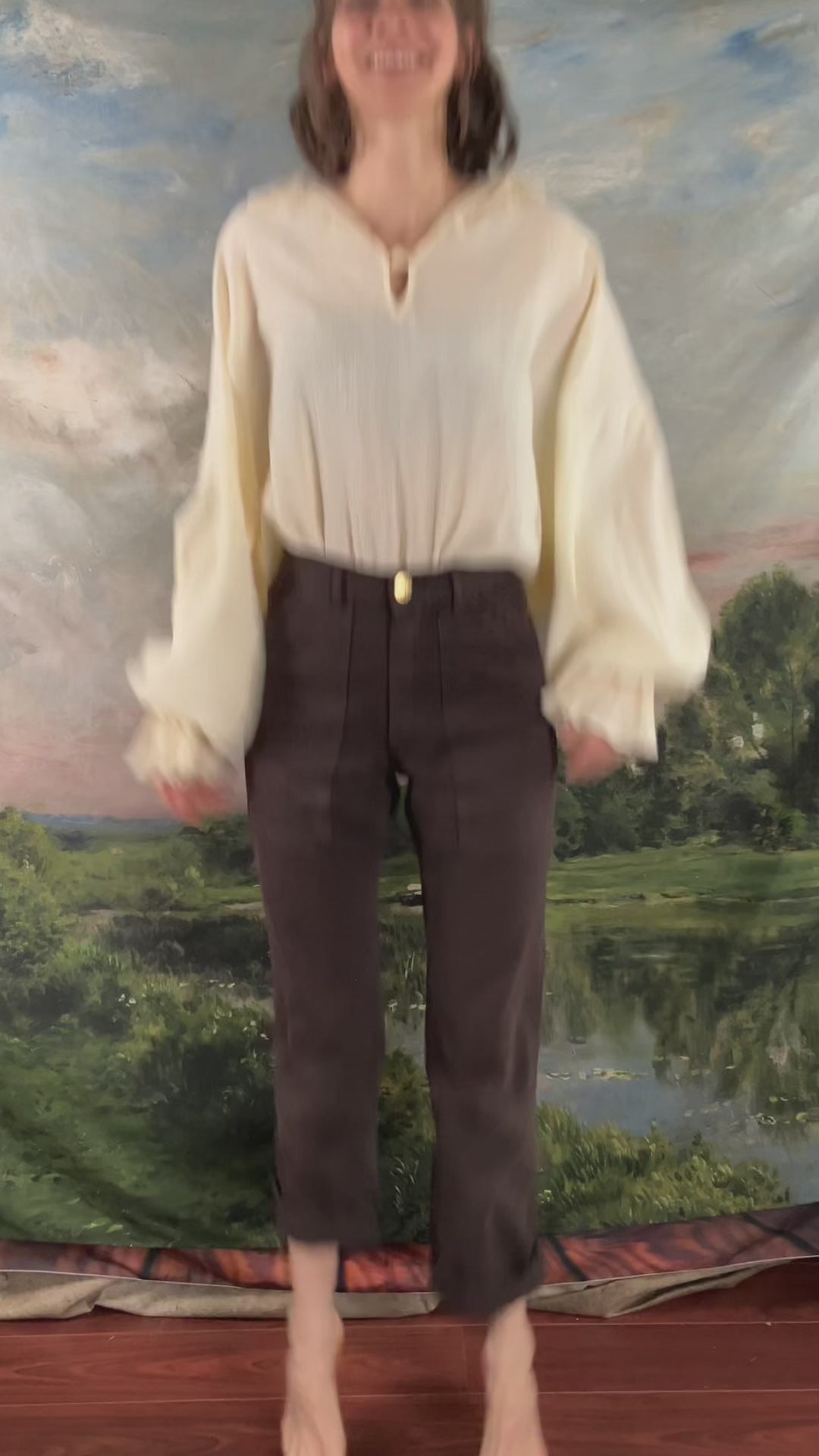 Much like Mr. Darcy, this antique ivory poet blouse exudes a quiet sophistication. It's crafted from 100% cotton with a textured gauze feel, offering comfort that befits a true English gentleman.