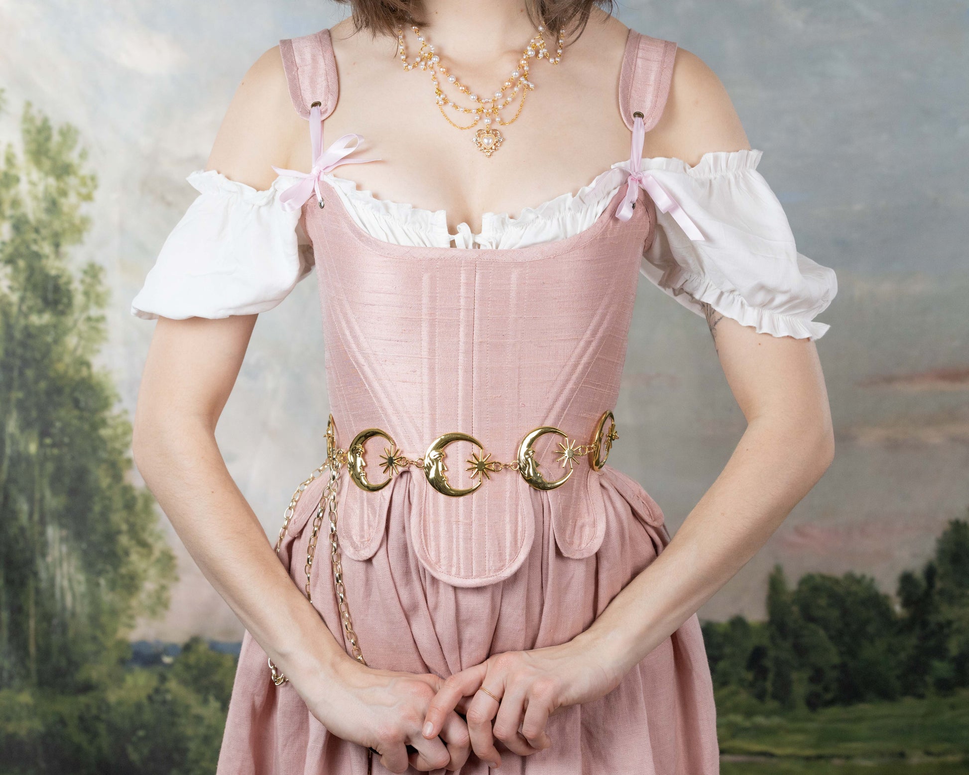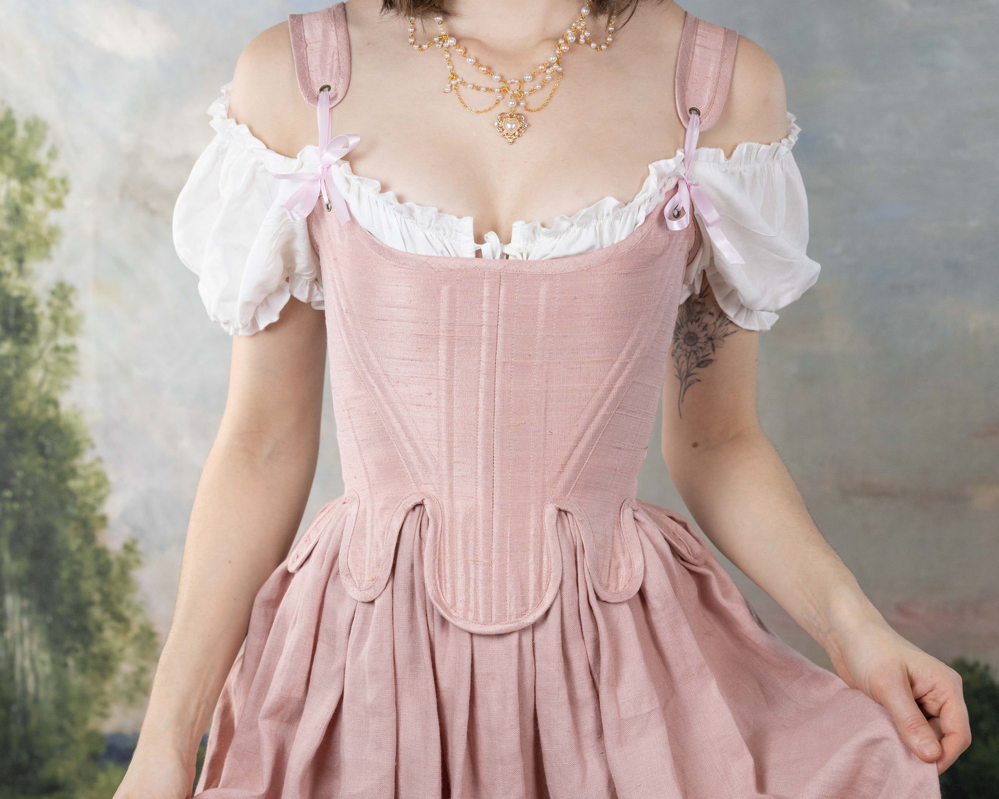 From running through the palace halls at Versailles to taking tea in golden-lit backyard rose gardens, our Rose Pink Silk Dupioni 18th Century Stays are the perfect companion for the Rococo-inspired daydreamer.