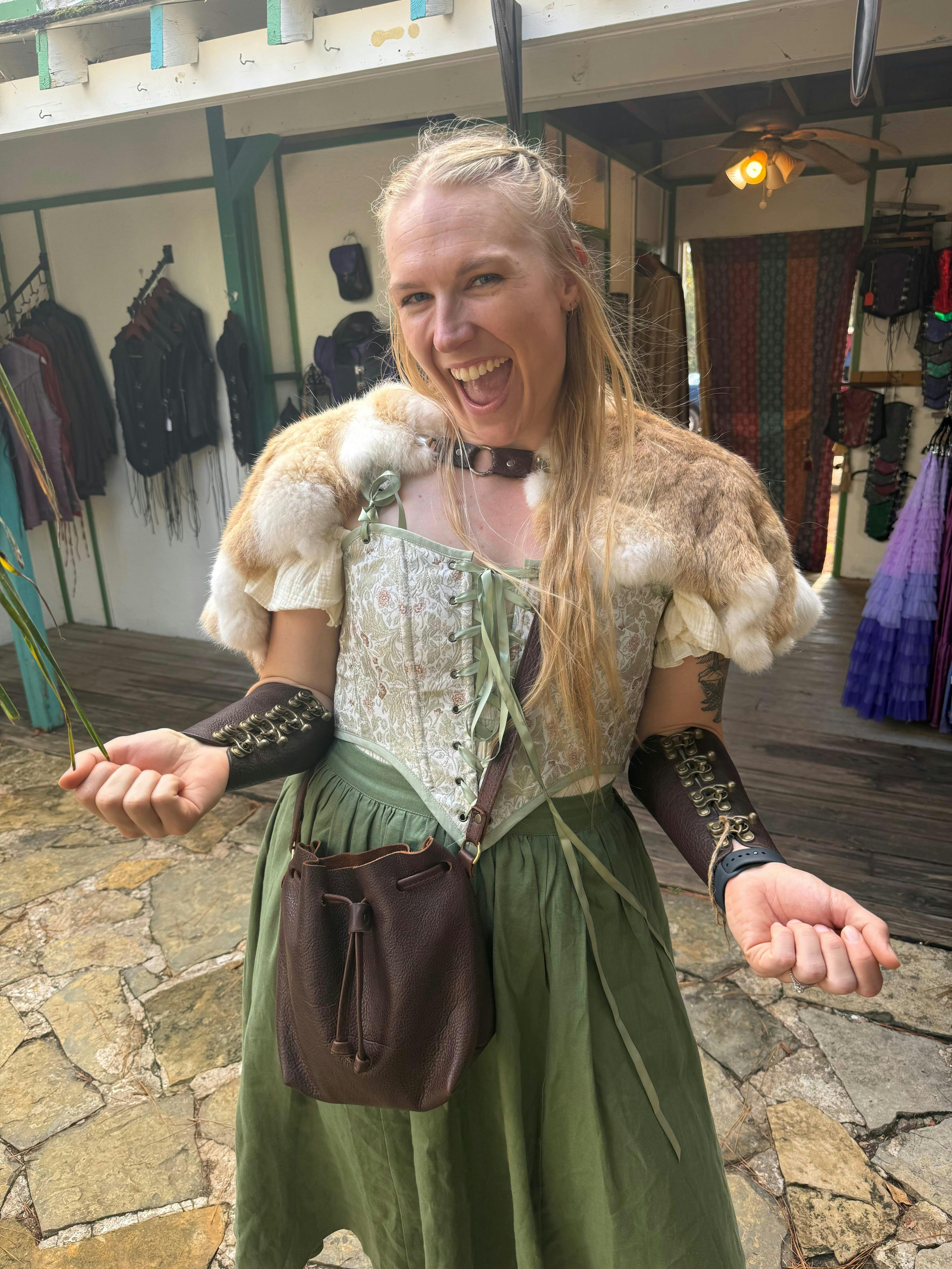 With a lace-up front and back for an adjustable fit and removable straps for versatility, it’s a comfortable yet structured piece that’s easy to style for everyday wear or a day at the faire. Simple, rustic, and effortlessly charming.