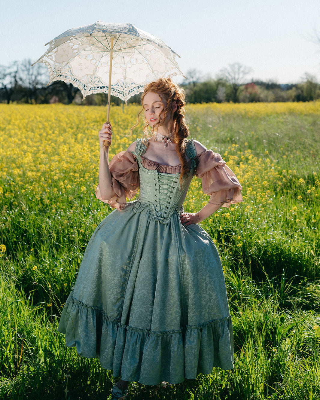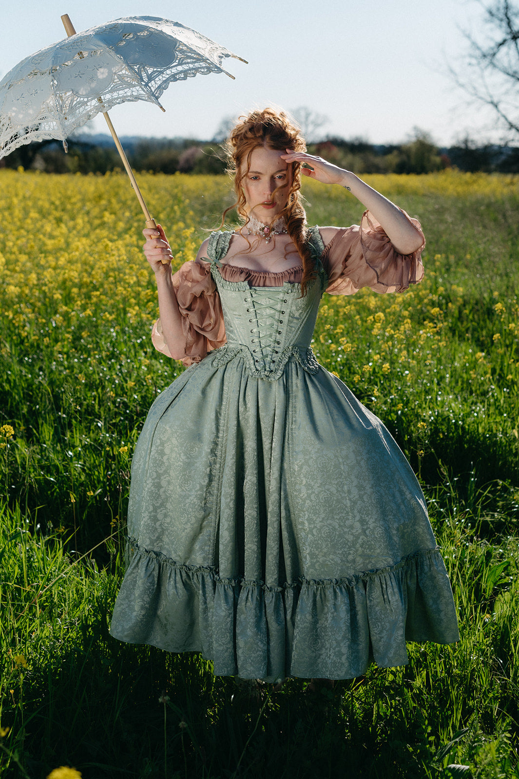 Pair it with our matching Mint Floral 18th Century Stays to complete the look.