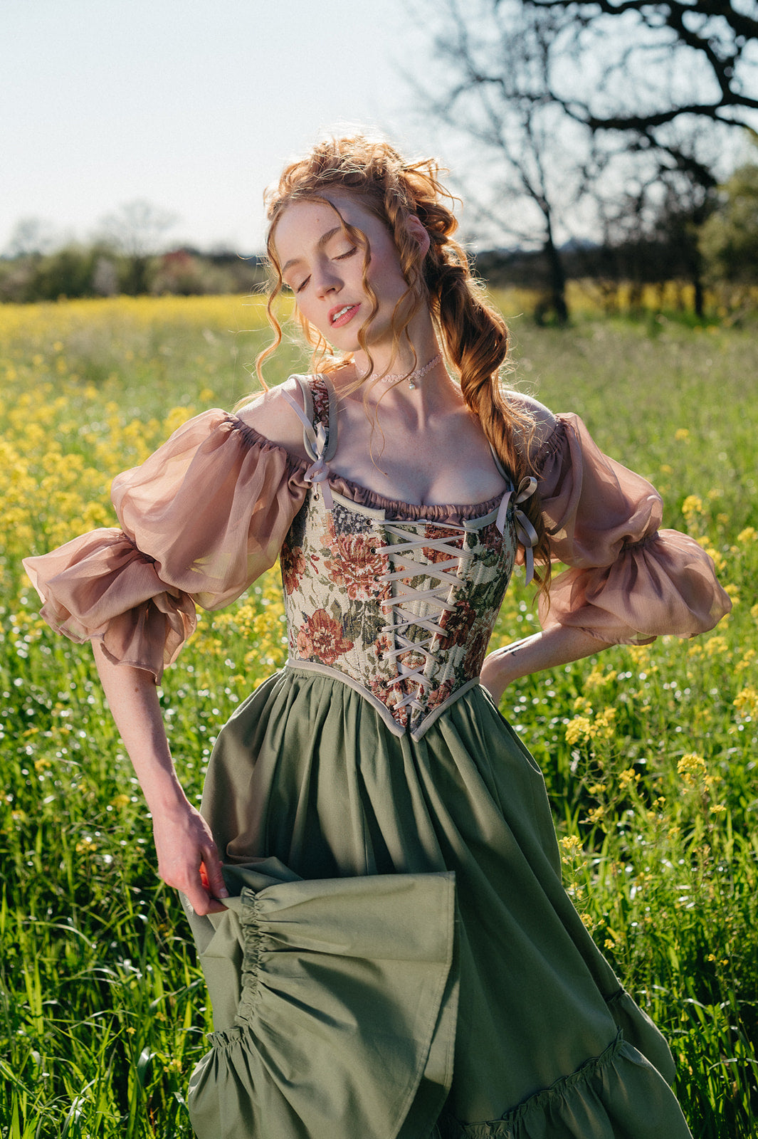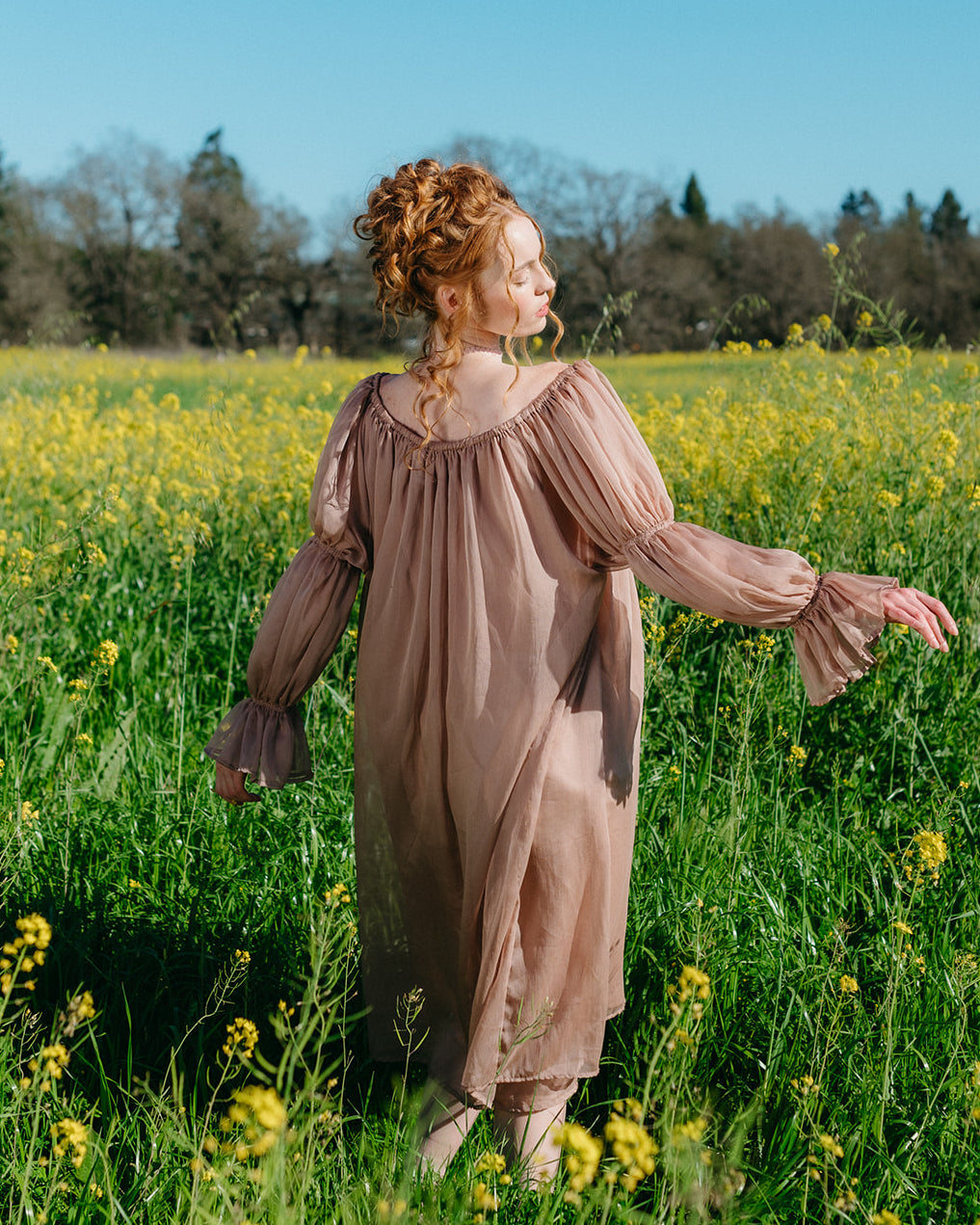 Slip into something soft and airy with the Rose Chiffon Chemise. This muted rose tone brings a gentle, romantic feel—perfect for fairytale mornings, summer markets, or layering into a full Renaissance Faire look.