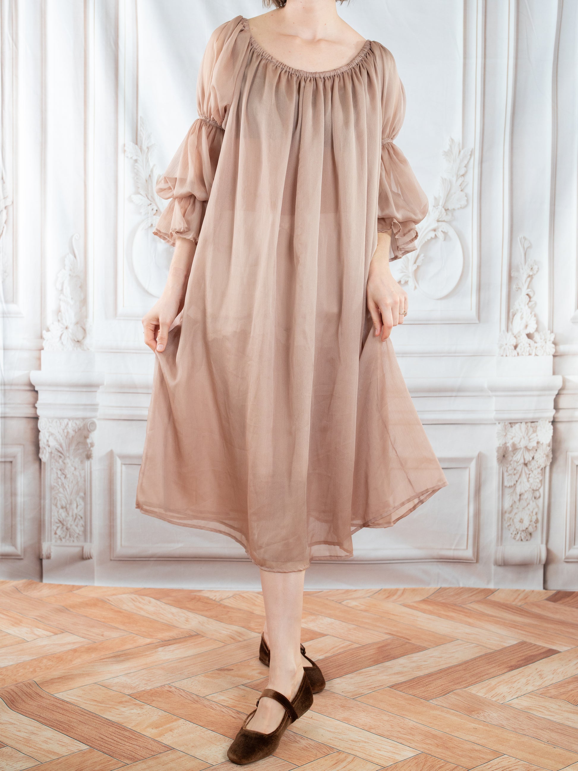 The puff sleeves are gathered with elastic for an easy, comfortable fit, and the lightweight crinkle chiffon gives the entire silhouette a soft, drifting movement. Wear it on its own as a nightgown or pair it with a corset, belt, or overdress for an effortless cottagecore outfit.