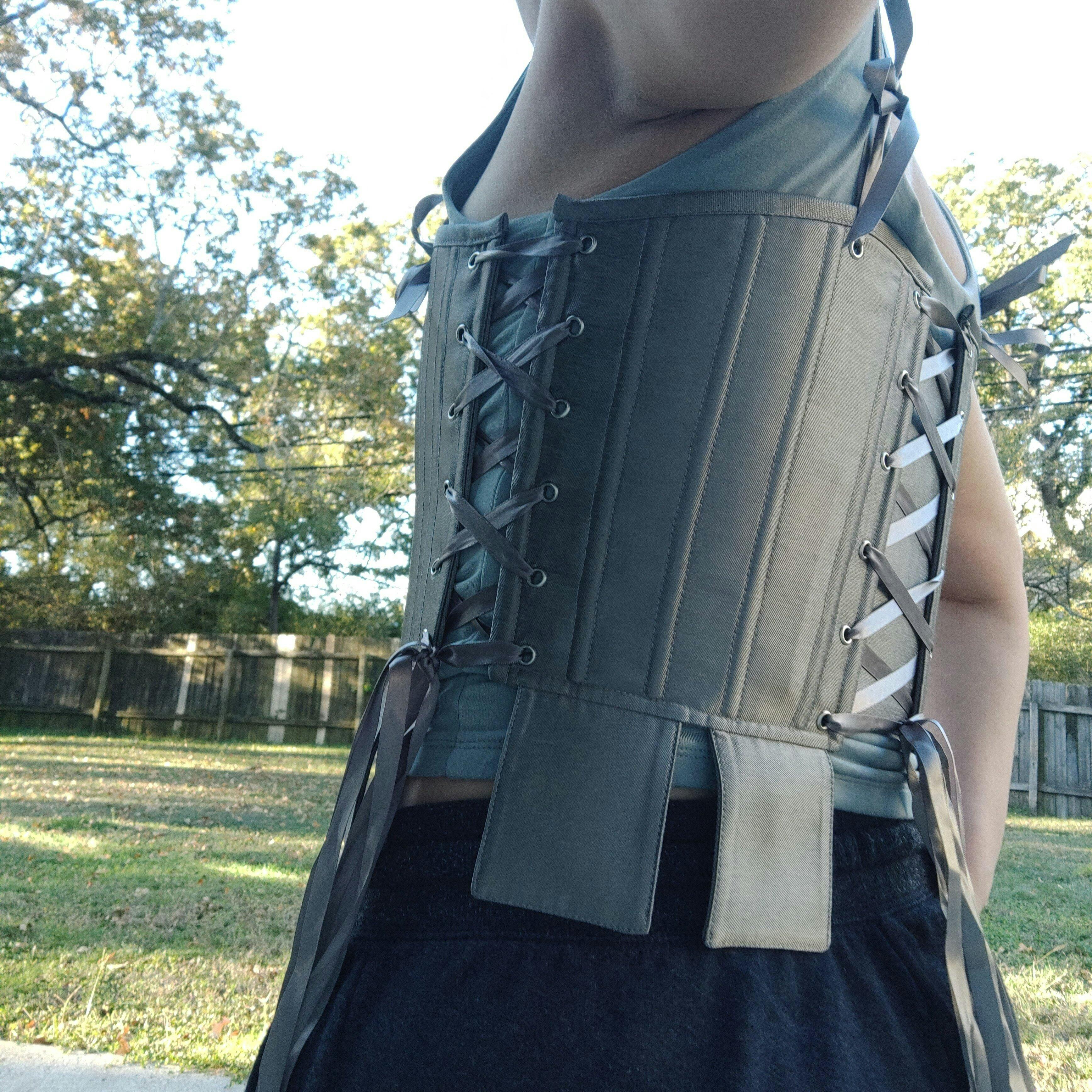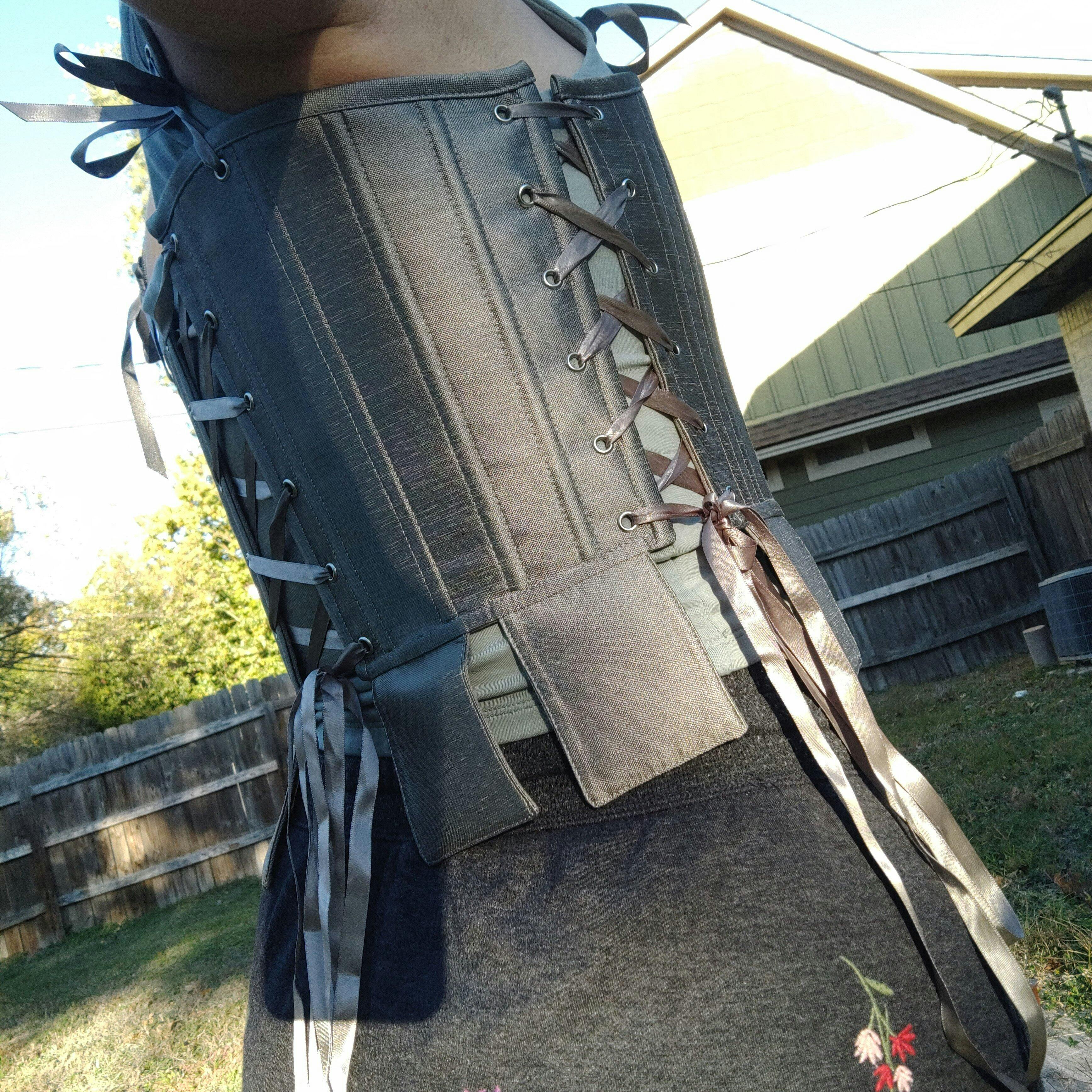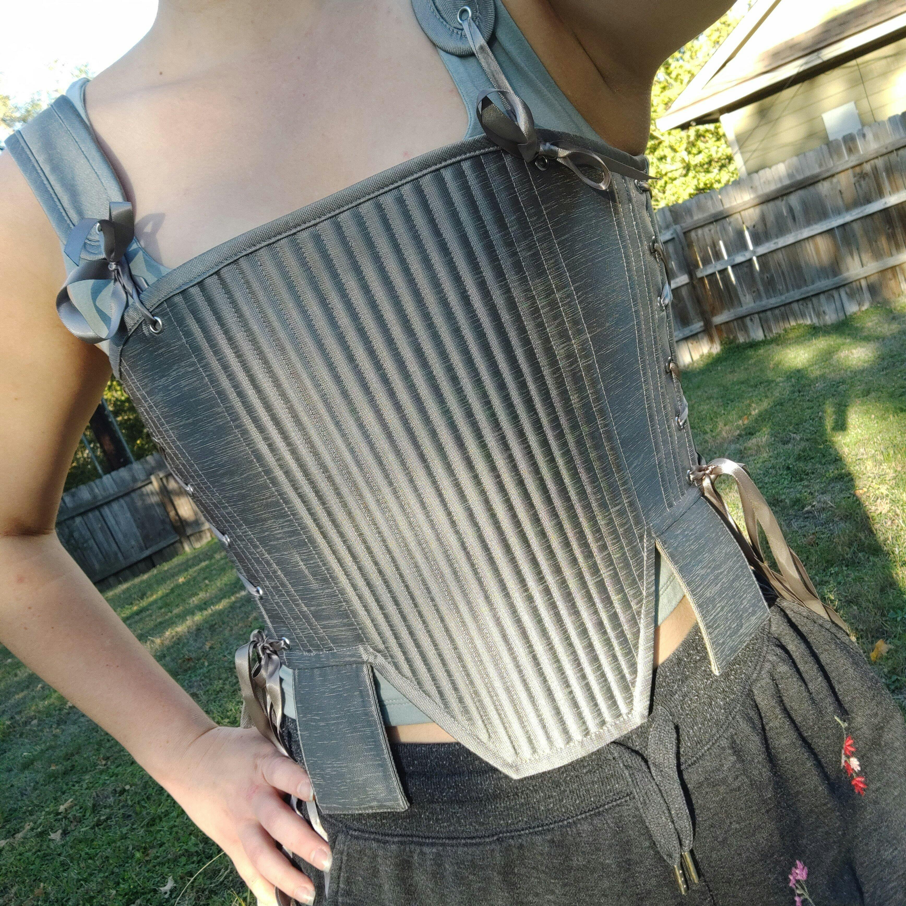 The Silver Tabbed Tudor Stays combine historical style with a bold, armored look. With adjustable side and back lacing, these stays offer a completely customizable fit and are perfect for creating a lady knight aesthetic or a more masculine silhouette. The heavily boned front provides support for chest binding, but it can also be adjusted to lift and shape the bosom for more cleavage in classic Tudor style. The square waist tabs are purely and perfectly ornamental, for adding a little bit more whimsy to this elegant style. Whether you’re channeling strength or elegance, these stays offer both functionality and fierce style.